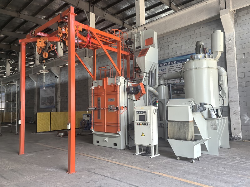 該系列為吊鉤式拋丸清理機,它廣泛應用于鑄造、鍛壓機械、鋼鐵等行業,主要用于鑄件、結構件、鋁合金件及其它零件的表面清理和強化。本系列拋丸清理機分單鉤和雙鉤兩種。用戶可根據實際需要選擇,它具有無地坑,密封性能好、不漏丸、結構緊湊、生產率高等優點。