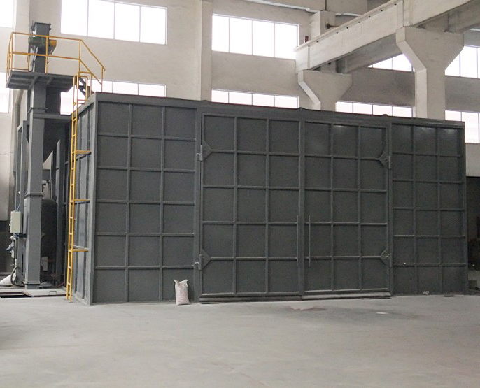 噴砂清理房主要有:清理室、噴砂系統、磨料循環系統、通風循環系統、送風系統、柔門升降系統、照明系統、電控系統等組成。